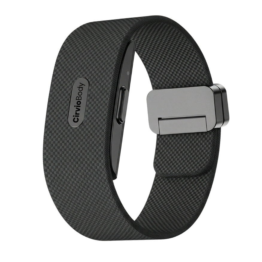 A: 10 days on a single charge. Apple Watch requires daily charging. Hume Band lasts 5–7 days. CirvioBody is designed for uninterrupted 24/7 tracking — because patterns only become clear when there are no gaps in the data.